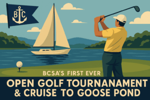 We’ll be sailing (or driving, for the faint of heart) from NASM Marina up to Goose Pond Colony Resort. That’s right, the first-ever BCSA Open Golf Tournament is happening. And yes, it will be best ball – because otherwise, we’d still be on hole #2 when dinner is served.