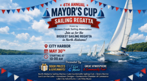 Browns Creek Sailing Association is proud to host the Mayor’s Cup Regatta and invites sailors of all classes to compete in this annual event. Racing will take place in the waters of City Harbor on Lake Guntersville, Alabama, as part of our continued effort to promote and grow the sport of sailing in the region.
